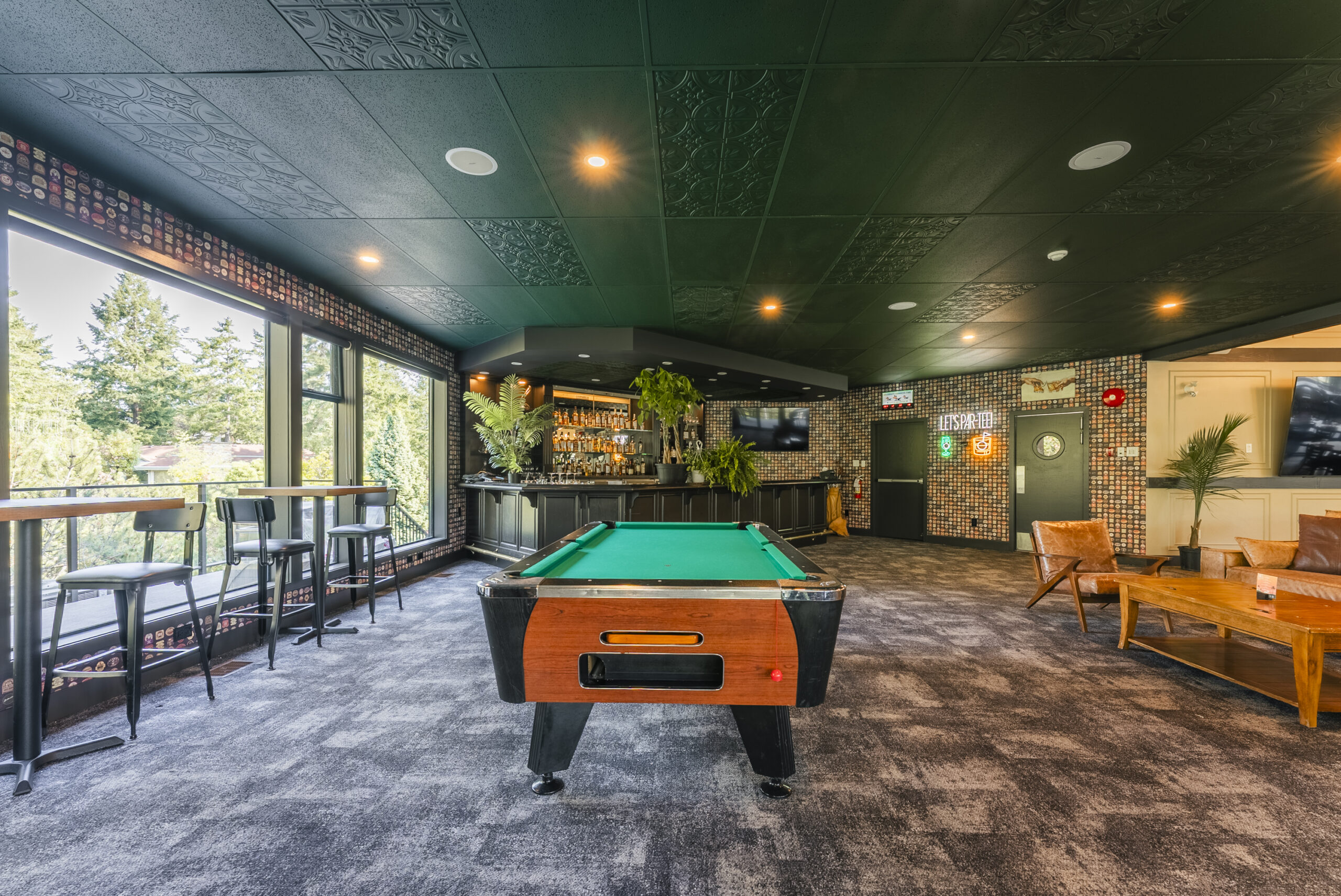 Located in the beautiful Fairwinds Golf Course in Nanoose Bay, the Greenview Tap House is a hub for pre-golf, post-golf and everything in between. The new space features a gorgeous multi-tiered patio, huge windows facing the course, a well stocked whiskey bar, mini golf to amuse the kids and space for large groups.