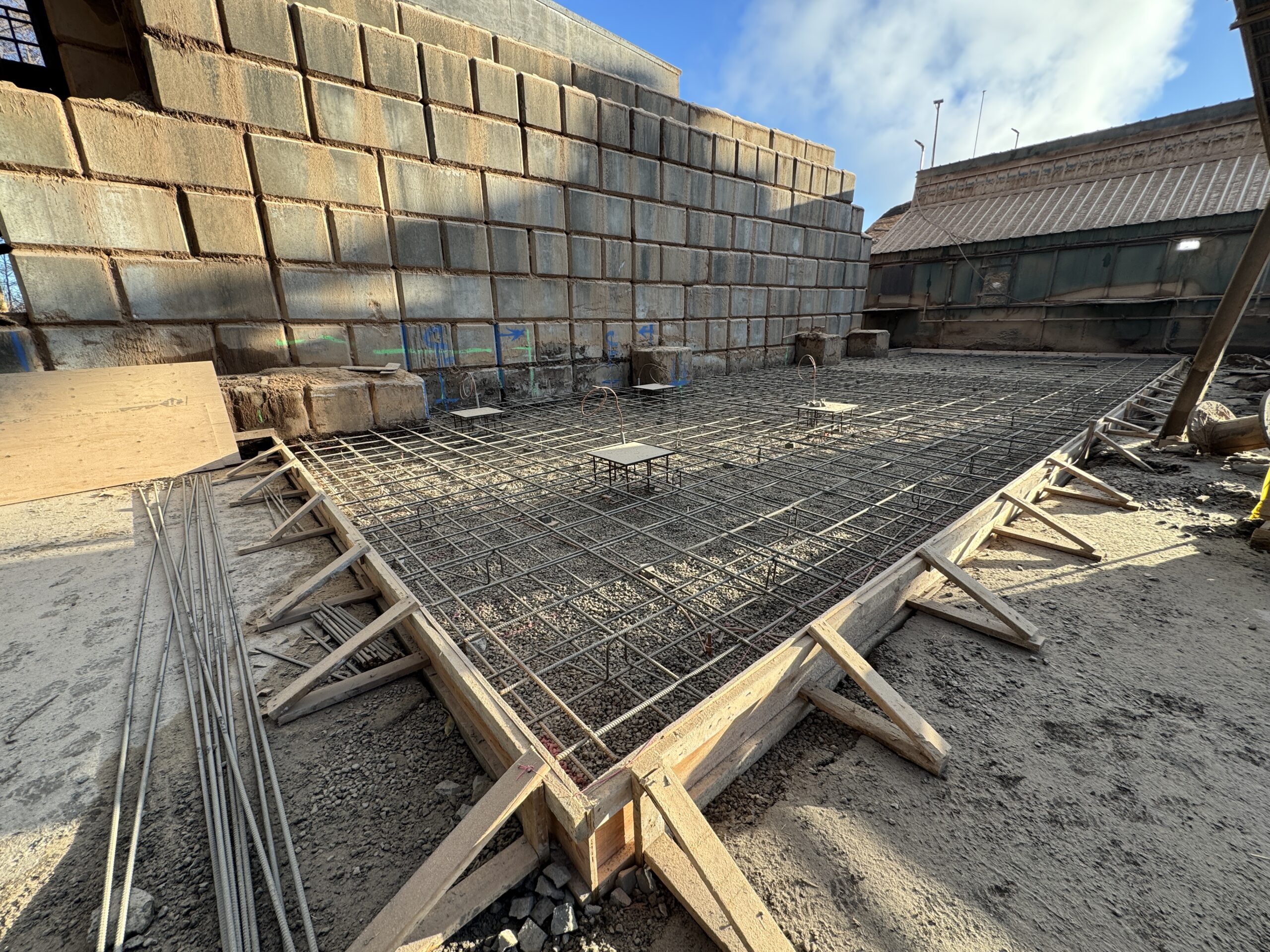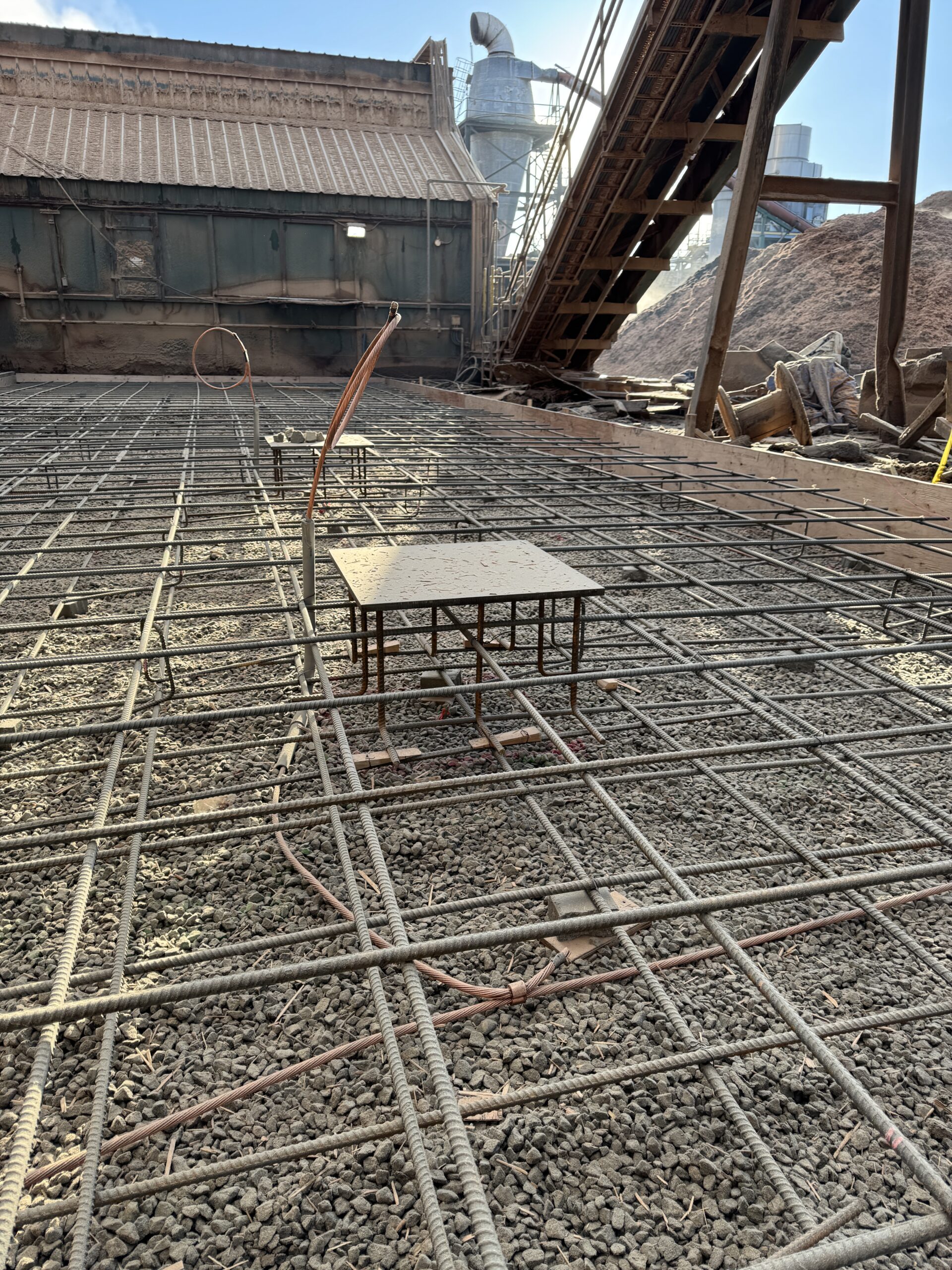 Allester Engineering provided the structural design for the exterior equipment slab, incorporating cast-in-place embed plates at key anchorage locations to accommodate current requirements and allow flexibility for future equipment installations. The slab was engineered to perform as a durable, long-term platform capable of safely supporting the baghouse and its associated mechanical systems under demanding industrial conditions.